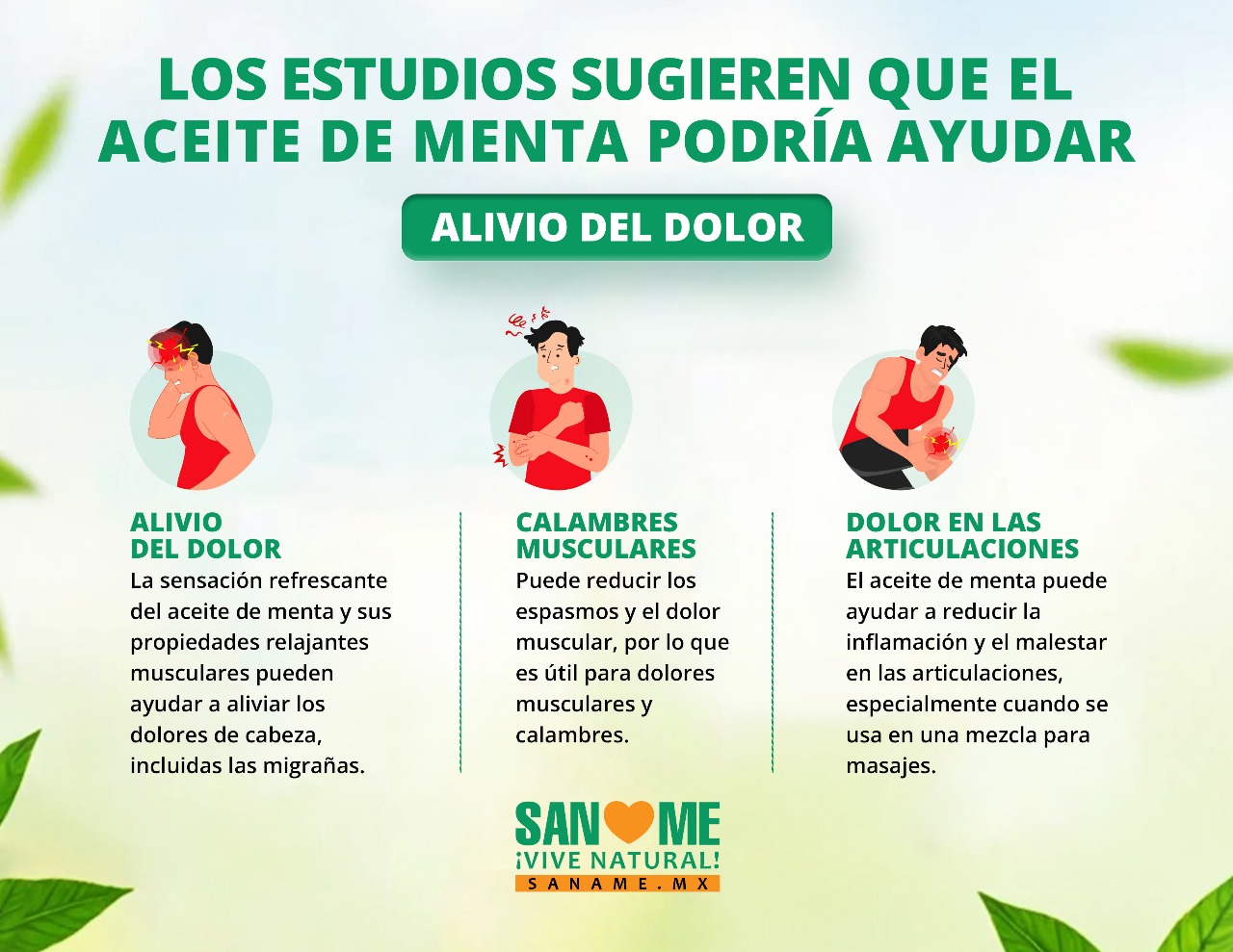 La sensación refrescante del aceite de menta y sus propiedades relajantes musculares pueden ayudar a aliviar los dolores de cabeza, incluyendo migrañas.